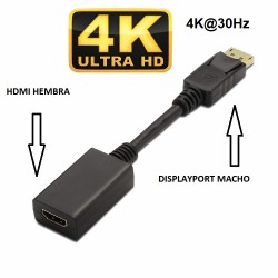 ADAPTADOR DISPLAYPORT Macho-HDMI Hembra 15cm NEGRO Version 1.2 4K@30Hz