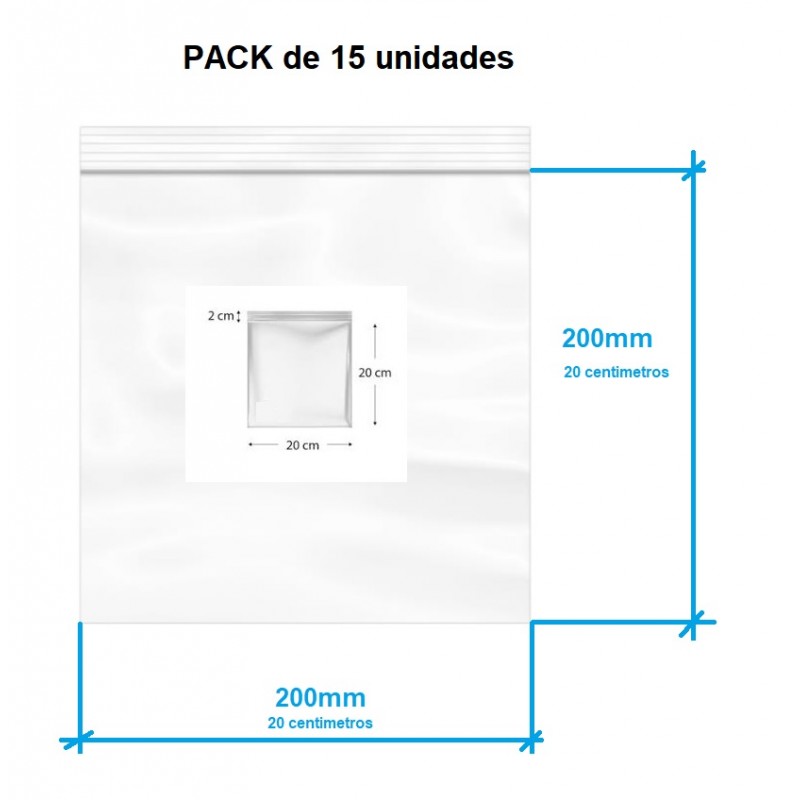 BOLSA CIERRE ZIP 200X200mm TRANSPARENTE PACK 15u