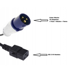CABLE de CETAC 3P (fase+neutro+tierra) 16A Macho a IEC C19 Hembra 2 metros con Cable 3G1.5mm NEGRO