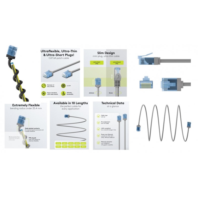 CABLE UTP CAT6A RJ45 M-M 0,15M NEGRO SLIM LSZH (AWG32 DIAMETRO 2,8mm) (WENTRONIC) (OJO ES CAT6A UTP sin pantalla)