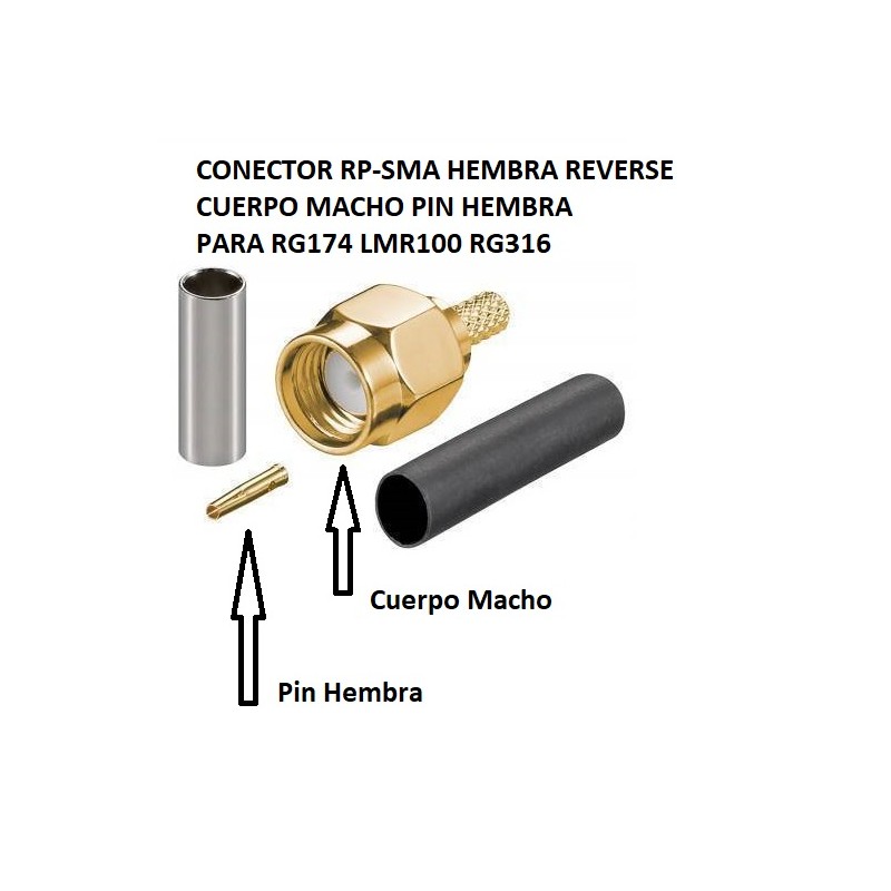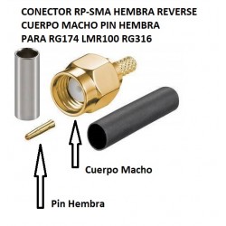 CONECTOR RP-SMA RPSMA R-SMA RSMA SMA HEMBRA REVERSE CUERPO MACHO PIN HEMBRA PARA RG174 LMR100 RG316