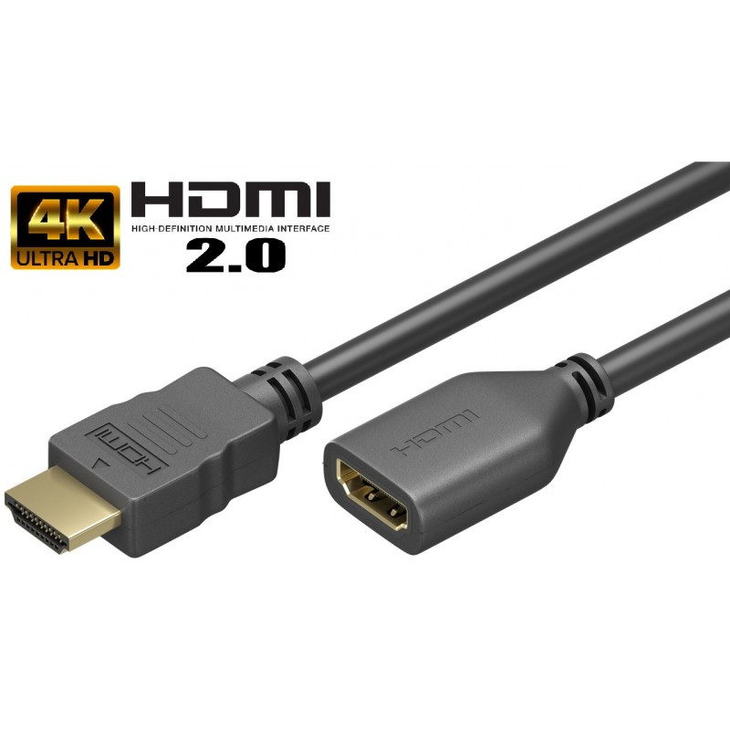 CABLE PROLONGADOR HDMI MACHO-HEMBRA 4K@60Hz 1,5 metros Version 2.0 NEGRO (PROLONGADOR)