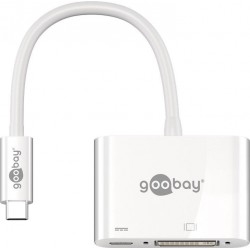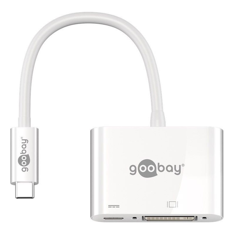 ADAPTADOR MULTIPUERTO USB C Macho - DVI Hembra + USB C Hembra 15cm BLANCO