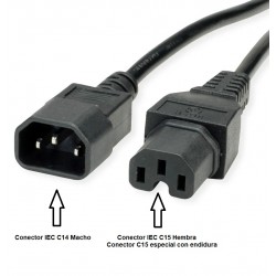 CABLE ALIMENTACION IEC C14 Macho a IEC C15 Hembra 1 metros NEGRO